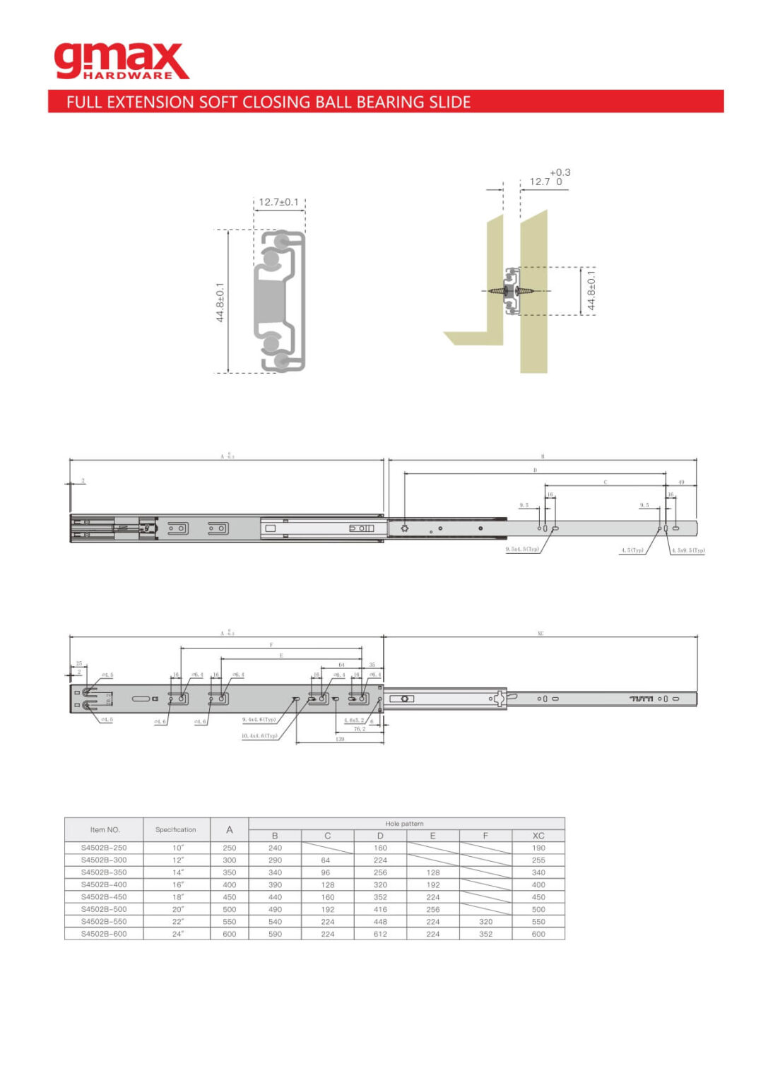 Elérhető hosszméretek: 300 mm, 350 mm, 400 mm, 450 mm , 500 mm, 550 mm, 600 mm.